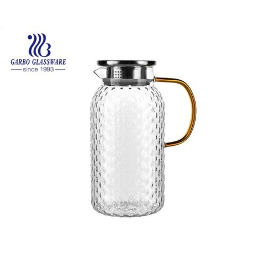 Jarra de Vidrio Texturizado 1.6 L con Tapa Metálica – Vidrio de Borosilicato Resistente